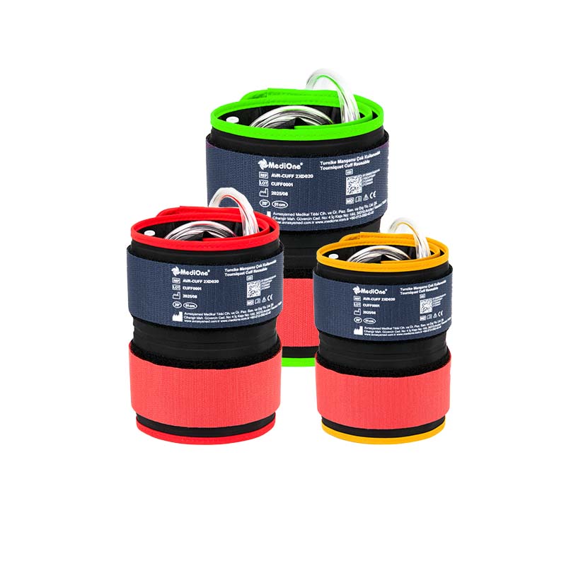 Turnike manşonları, ameliyat öncesi hazırlık ve operasyon sürecinde cerrahi ekibe güvenli bir çalışma alanı sunmak üzere geliştirilmiştir. Ergonomik formu ve esnek gövde yapısı sayesinde ekstremiteyi konforlu bir şekilde sarar; farklı beden seçenekleriyle geniş bir hasta grubuna uyum sağlar.
